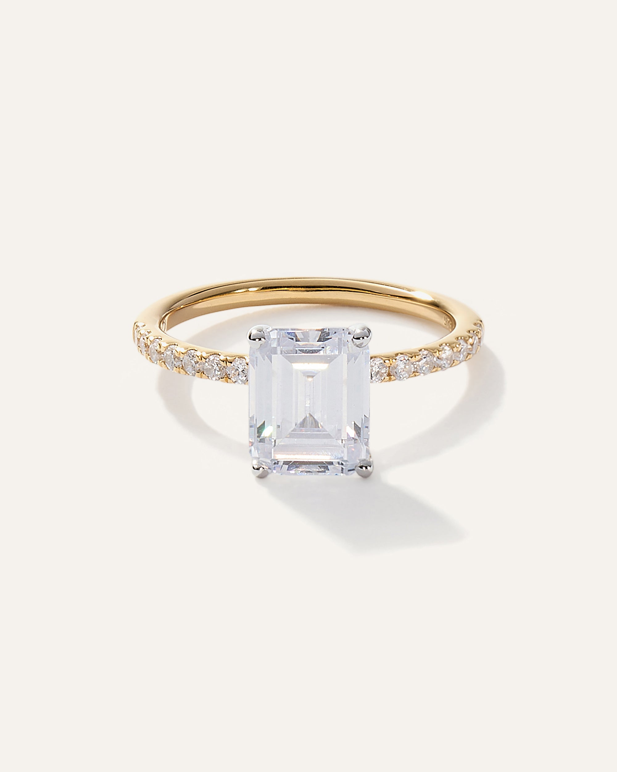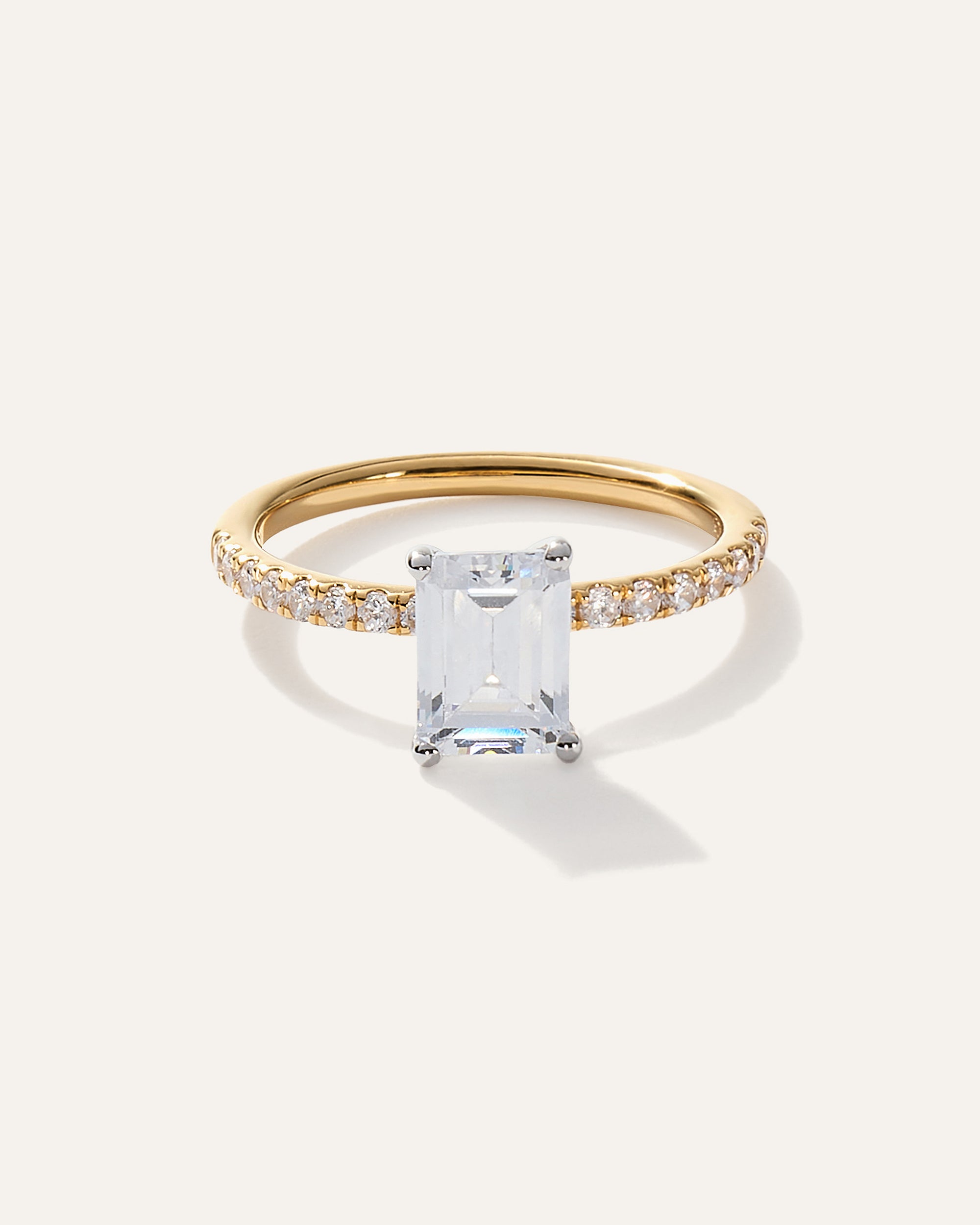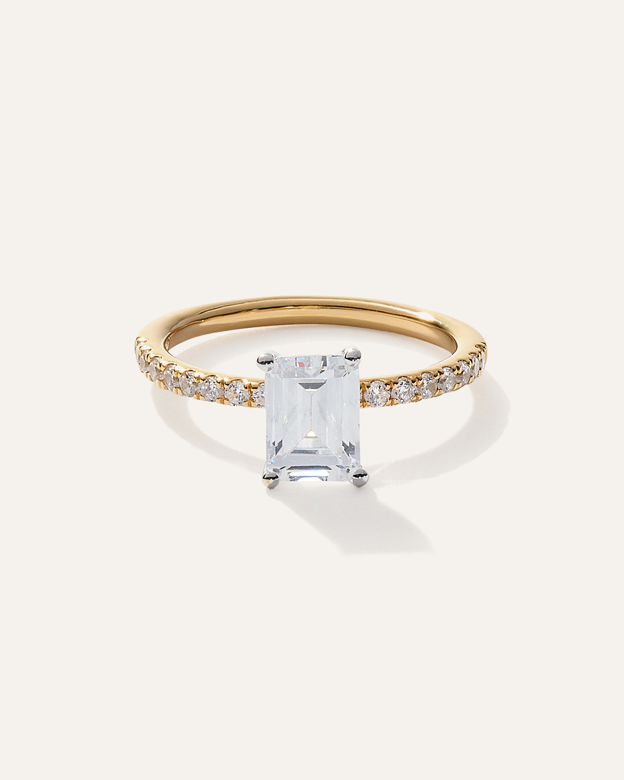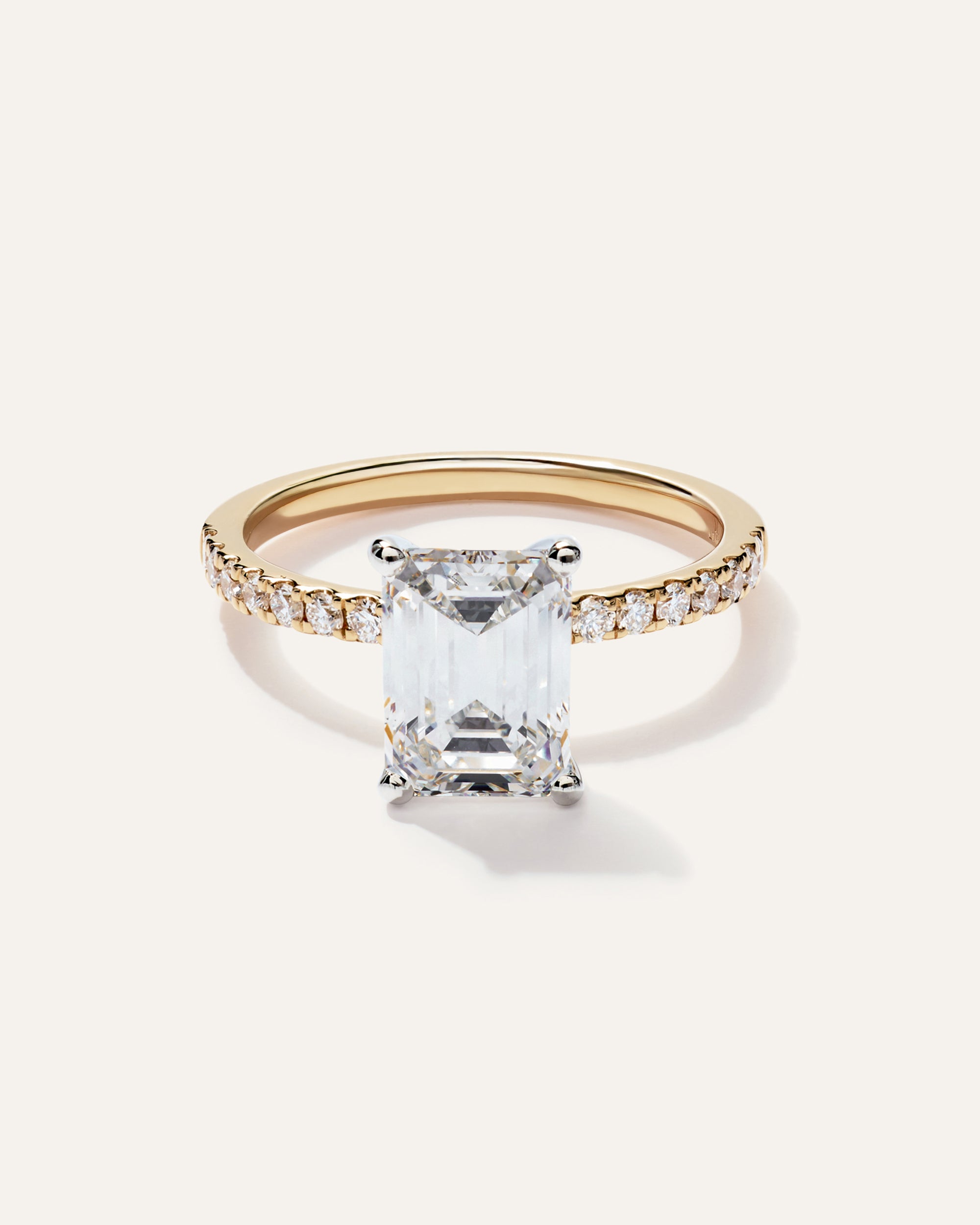 Lab Grown Diamond Emerald Petite Pave Engagement Ring
