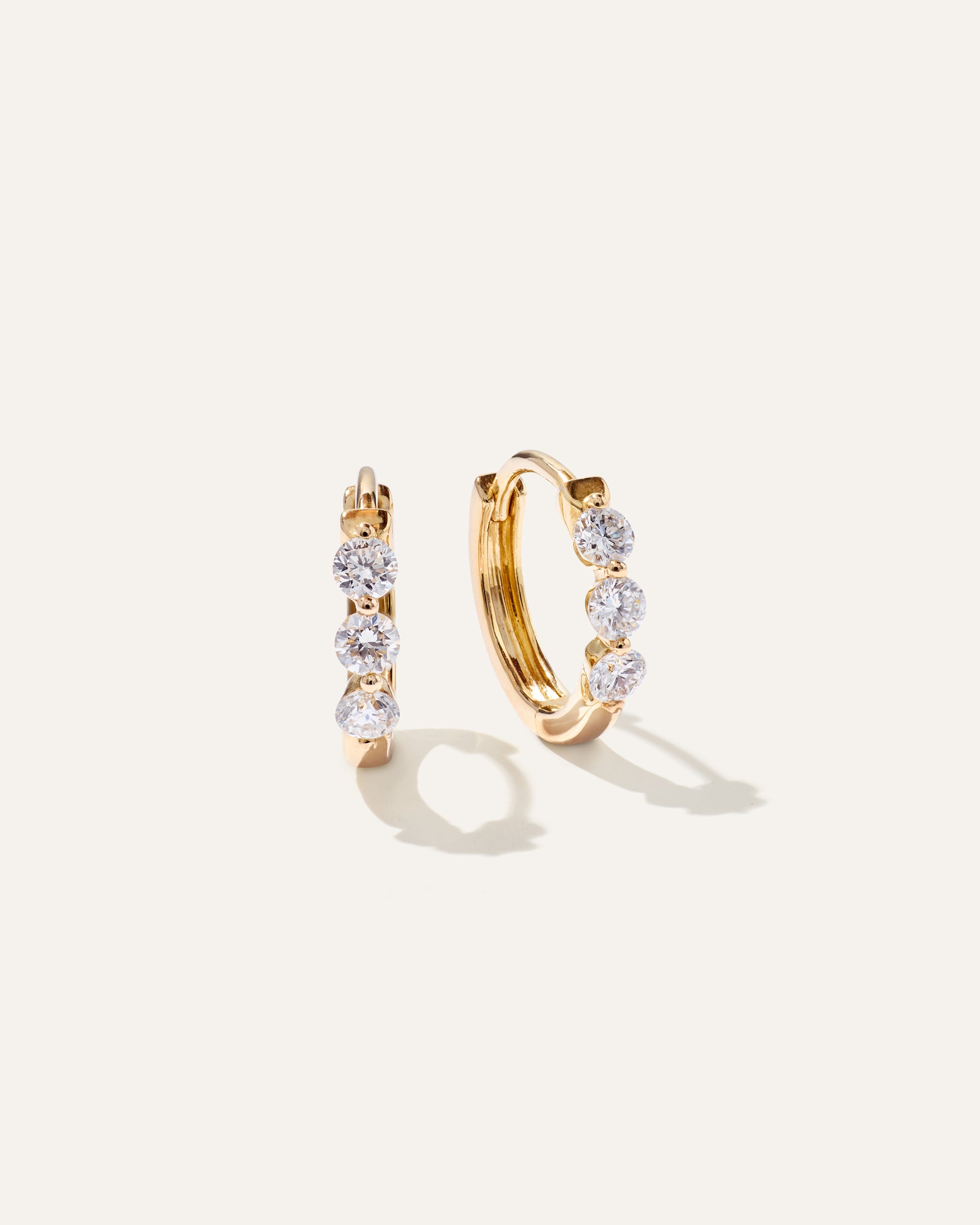 14K Gold Lab Grown Diamond Single Shared Prong Huggie